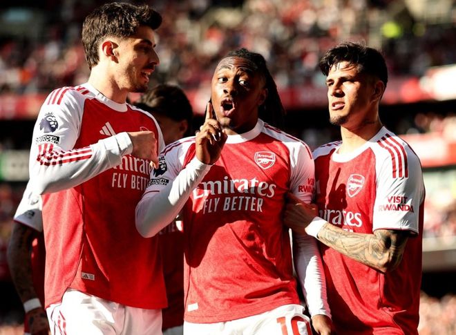 阿森纳排出433阵型。马杜埃凯、哈弗茨和埃泽的进攻三叉戟联袂出击。厄德高、苏比门迪和赖斯组成3中场。本-怀特、萨利巴、加布里埃尔和因卡皮耶4后卫首发出战。戴维-拉亚担任首发门将。萨卡、热苏斯、哲凯赖什和特罗萨德坐在替补席待命。