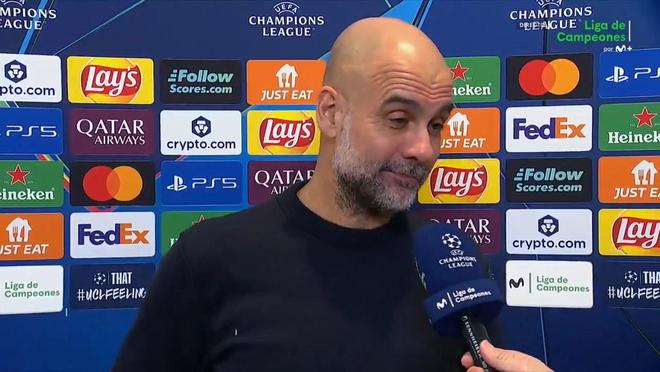 欧冠1/8决赛首回合在伯纳乌0-3负于皇马后,曼城主帅瓜迪奥拉接受了西班牙媒体Movistar+的采访。